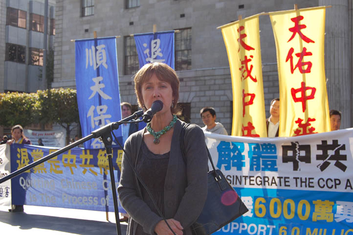 集会上,前欧洲议会议员、人权活动家帕翠莎·莫肯纳女士在演讲中说,共产党对国际社会的人权承诺没有一个兑现过,还仍然在迫害着中国人民,特别是对信仰“真善忍”的法轮功学员的残酷迫害,甚至罪恶地活体摘取法轮功学员器官出售牟利,国际社会不能容忍这一罪恶。西方政府在和中国进行贸易往来时,应该把人权状况视为最应考量的条件,忽视中国人民的基本人权和中共做生意是完全错误的。