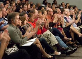 【明慧网二零零九年九月五日】(明慧记者黄凯莉综合报道)二零零九年九月四日,风靡全球的神韵艺术团再度莅临美国北卡罗来纳州格林斯伯勒市(Greensboro)的战争纪念堂剧场(War Memorial Auditorium)演出,吸引了当地官员、艺术界、银行界、商界以及华人等各界人士前来观看。