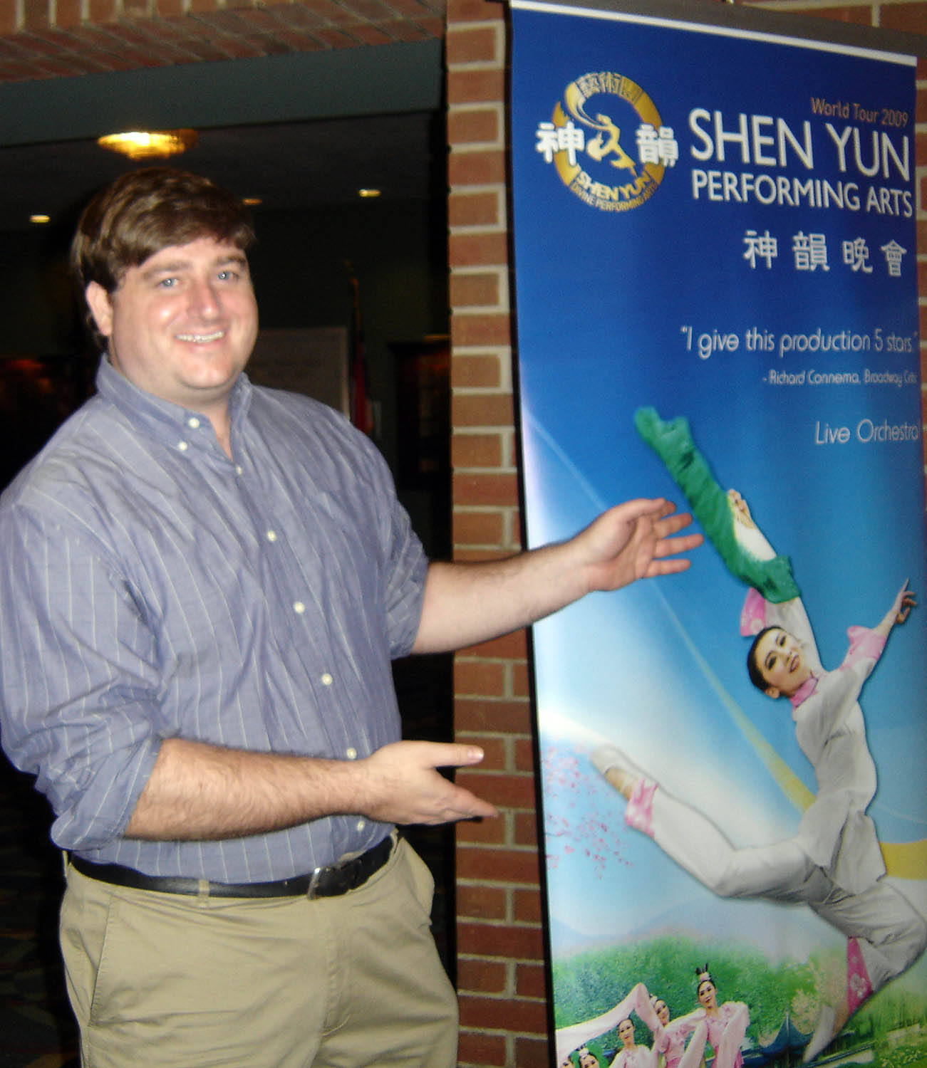【明慧网二零零九年九月六日】(明慧记者黄凯莉综合报道)图像设计师布莱恩•贝尔(Brian Bell)观看了神韵艺术团于二零零九年九月四日,在美国北卡罗来纳州格林斯伯勒市(Greensboro)战争纪念堂剧场(War Memorial Auditorium)的演出后惊叹,看到了他曾在教科书上看到过,但从未在现场感受过的传统视觉艺术。