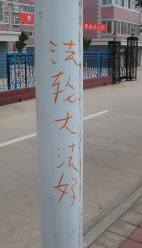 看了八月六日《明慧周刊》,两位老同修贴真相条幅很费力,我想借《明慧》一角谈一下我是怎样做的,请同修参考。