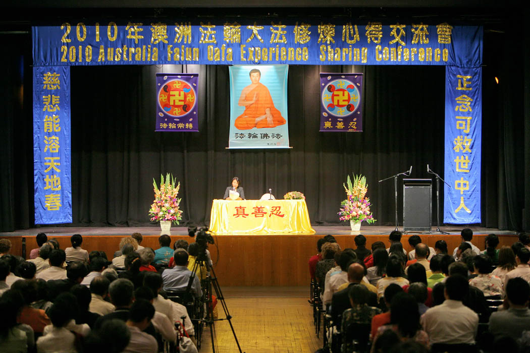 布里斯本的佛学会协调人以《在矛盾中修去人心 在大法中升华》为题,在法会上交流了布里斯本是如何在整体配合的矛盾中修去人心,为神韵拿到了最好的剧场的过程。她首先谈到“向内找是解决矛盾的关键”,当别人对协调人产生了不满情绪,自己成了被攻击的目标时,觉的很委屈,过后静下心来想:为什么我遇到这么多责难?为什么我感到这么难过?我们配合不好难道真是同修的错吗?”“向内找后我认识到,我周围发生的一切都是暴露我的执著心、去掉执著心的机缘,怎么能反过来抱怨同修不配合呢?我认识到,在助师正法、救度众生中,不能只是忙于做事,更重要的是不能放松个人修炼。不修好自己,怎么能完成好这么神圣的使命呢?”最后找剧场小组在一起交流向内找,佛学会成员也带头向内找。当我们开始归正自己时,佛学会与同修之间的间隔也越来越少,我们周围的场也越来越圆容。