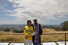 海拔一百九十八公尺的伊甸山,是奥克兰市的一个制高点,站在山顶可一览奥克兰全貌与壮阔海景,所以这里是奥克兰市的重要景区之一。正因为此,从九九年中共镇压法轮功开始,这里也就成了本地法轮功学员反迫害并且向游客讲真相的重要场所。而伊甸山恰恰是阿卡若纳酋长的部落区域。