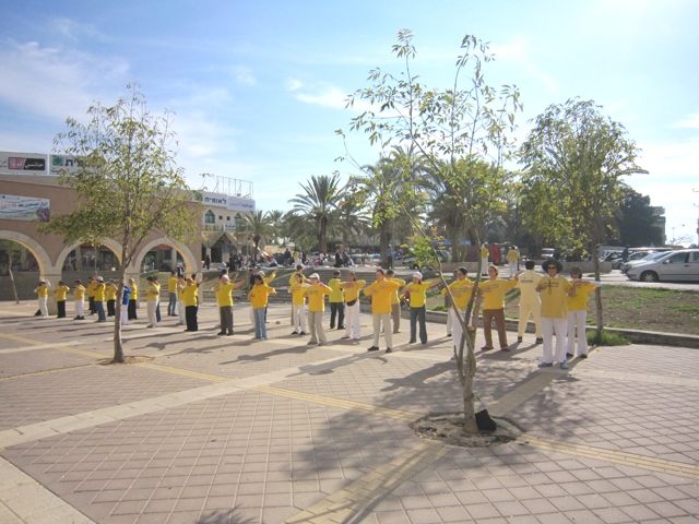 ![]() 法轮功学员在Tel-Sheba市教功 |