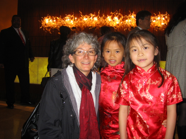 她说到动情处,用手臂紧紧搂住两个女儿。并说:“快说谢谢(Xie-Xie–thank you)”两个女儿用清脆的童音说了中文“谢谢”。小脸儿像两朵阳光下绽开的花。