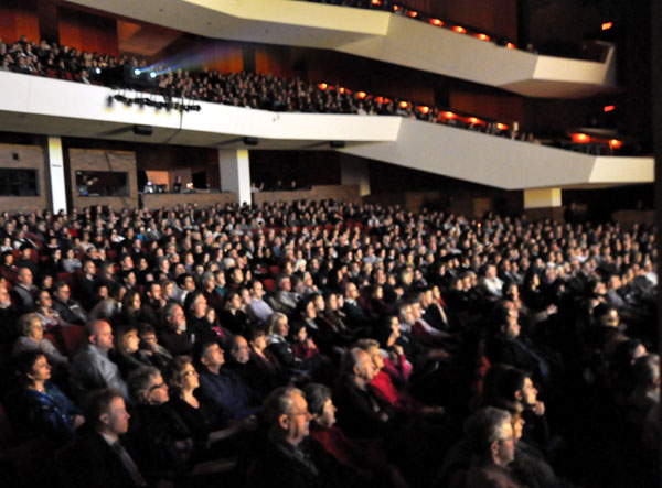 演出开始前一个小时,晚会主办方协调人Kevin表示,今天观众满场了。对于在周二晚上的演出,观众能如此踊跃,他表示满意。主办单位负责票务的俞女士说,今天第一个到场的是一对来自渥太华的退休夫妇。他们在渥太华上演晚会期间没能买到门票,就买了汉密尔顿的晚会门票,今天驾车五个多小时来到剧院。而对于久仰神韵美名,不曾有机会观看的汉密尔顿观众,这次终于如愿以偿。