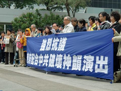 简鸿章在记者会上指责香港当局配合北京打压神韵艺术团在香港演出,因此被迫宣布该艺术团取消原定在香港的所有演出。