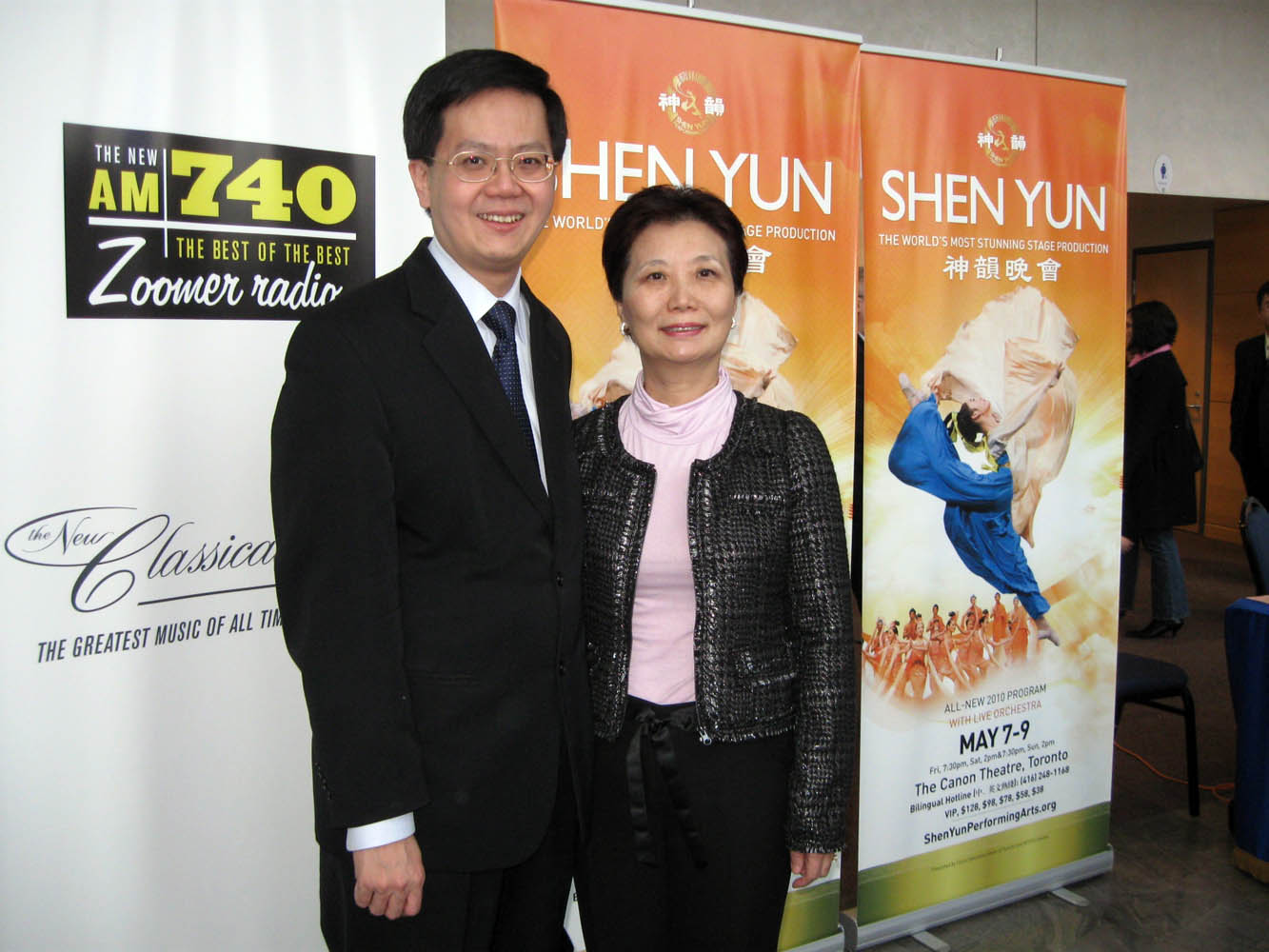 从香港移民来加国,前全加华人保守党协会主席袁海耀(Alex Yuen)和太太露西观看了二十三日下午的神韵晚会。袁海耀表示,神韵晚会棒极了!是又一个杰作。露西说:“(演出)太美了!令我惊叹不已,我像是到了天堂一样。”