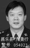 刘景行,男,三十六岁,一九九七年入公安系统,先后在昌乐县公安局巡警大队、刑警大队、乔官派出所、五图派出所、阿陀派出所工作,现任昌乐县公安局阿陀派出所副所长,三级警督警衔,警号054023,电话13406631888、0536-6299753、0536-6233522。