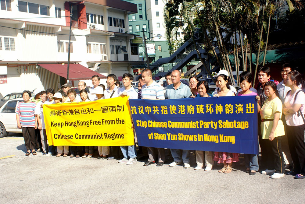 此次抗议活动的发言人陈智干表示,中共在亚洲干扰神韵演出的情况相当严重。在二零零八年,中国驻马大使馆向当时的文化、艺术及文物部施压,要求政府取消神韵晚会的演出。该部门于二月底在毫无预警的情况下发函通知主办方,要撤销已经发出的演出准证,信函中注明原因是“中使馆反对”该演出。神韵在马来西亚的主办方此后不断呼吁该部门放行神韵,得到的回复是,主办方“必须先得到中使馆的同意”。此外,在韩国也曾发生中共胁迫剧场取消演出合约的事件。