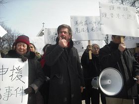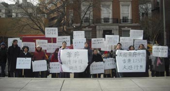 很多观看过神韵演出的华府观众冒着严寒赶来参加集会。