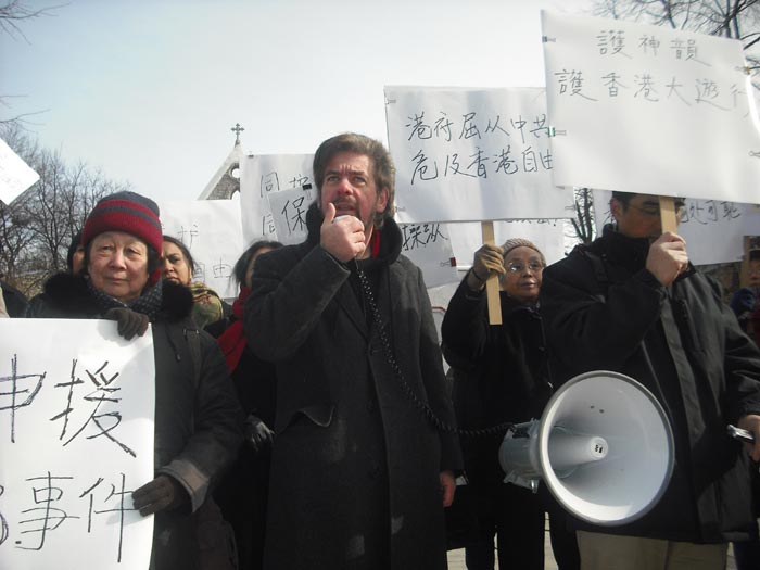 美国天主教大学教授聂森说:“美国首都民众十分关注香港阻扰神韵演出的事态发展,我们美国华府的海外华人对港府公然践踏香港自由,出卖香港民众的福祉,讨好中共流氓政权的卑劣行为表示强烈的抗议与愤慨。”
