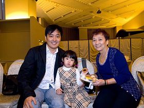 ![]() 知名艺人李志希(左)与母亲、四岁的女儿,出席了二零零九年二月廿八日神韵之友招待餐会。 |