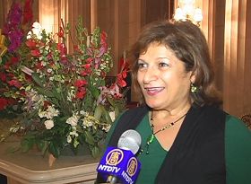 她的朋友也是连声称赞神韵的演出非常杰出:“很好很好,三个独唱演员都非常好,特别那个男高音,太棒了。音乐也非常精彩。”