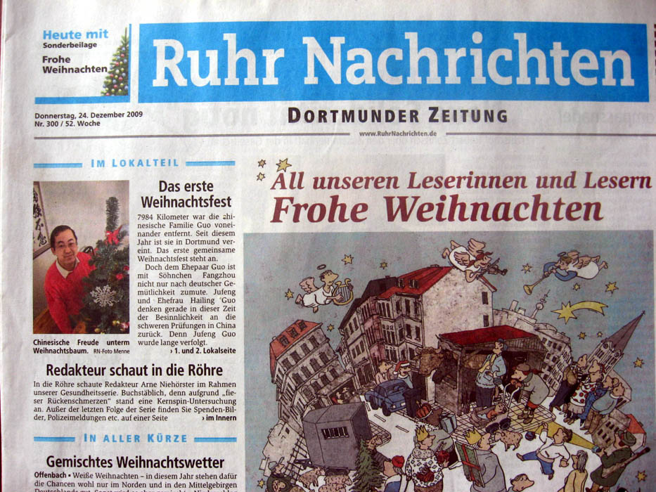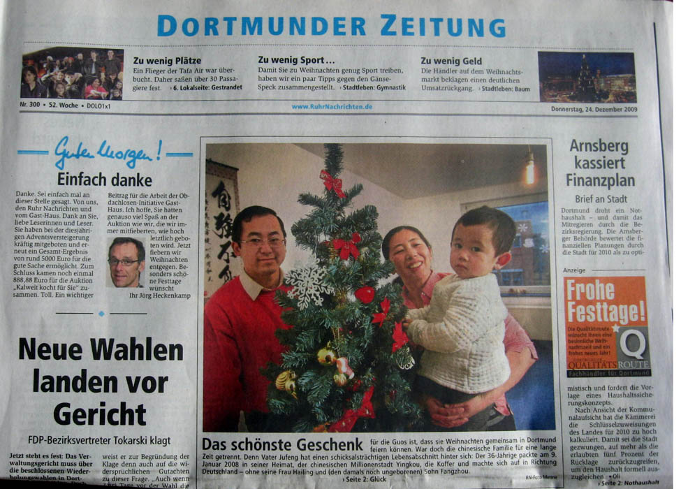 在地方版的第二版上描述了这个三口之家的故事,主标题是:“一个中国人在多特蒙德的幸福时光”副标题是:“一个家庭在二零零九年团聚并共同欢庆圣诞节”。