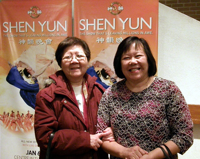 ![]() 二零一零年一月六日晚,滑铁卢地区的华人林女士(右)与她的亲戚,一同来欣赏美国神韵国际艺术团的演出 |