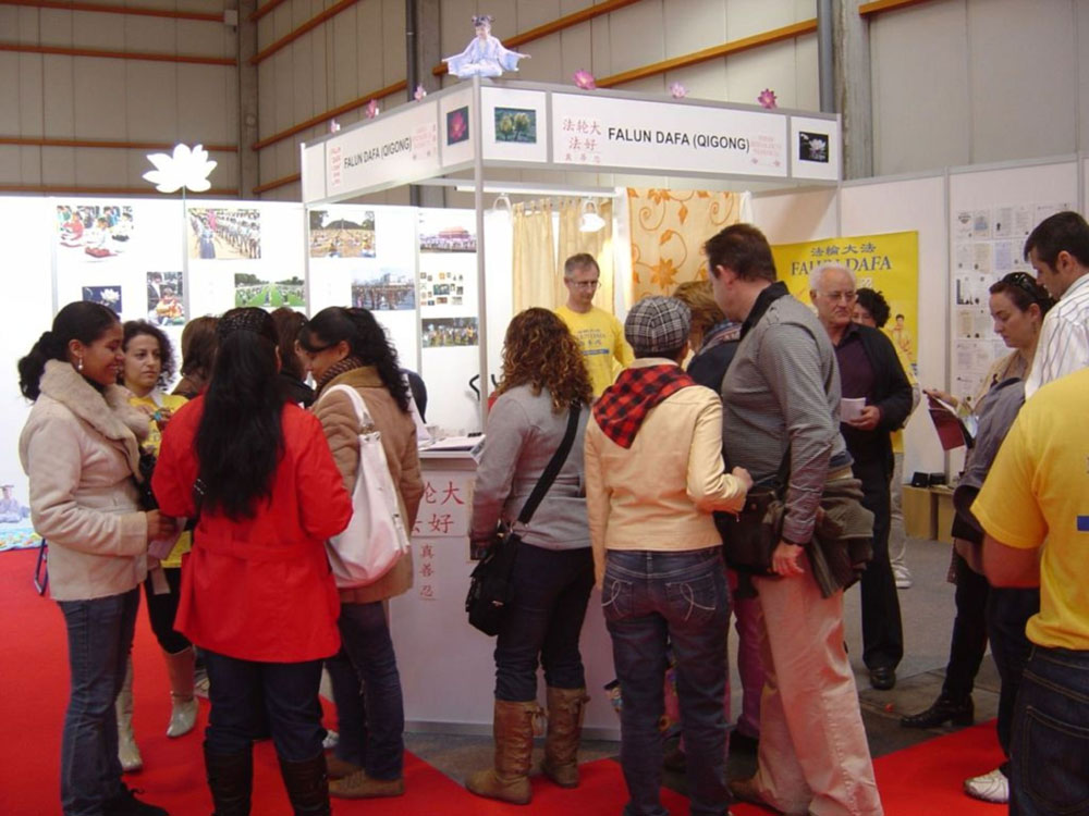 在健康博览的展厅里,法轮功的展位格外引人注目。墙壁上一朵盛开的莲花迎接着前来参观的游客。法轮功学员们随着悠扬的炼功音乐演示着五套功法,人们被祥和的氛围所吸引,纷纷驻足观看,希望了解更多信息。有的当场就开始学习法轮功。