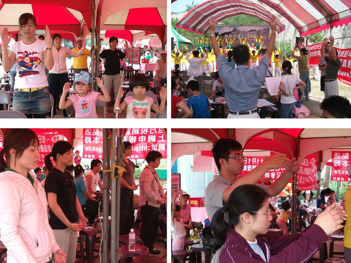 法轮功学员在会场穿梭,介绍法轮功,谈自己在法轮大法修炼中如何受益,颇受民众欢迎。