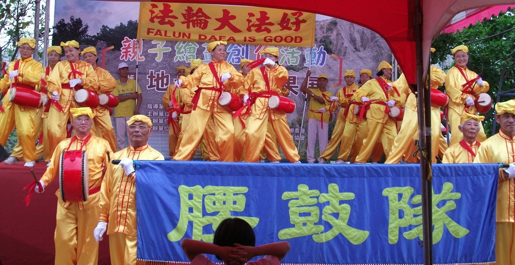![]() 法轮功学员组成的腰鼓队表演精彩 |