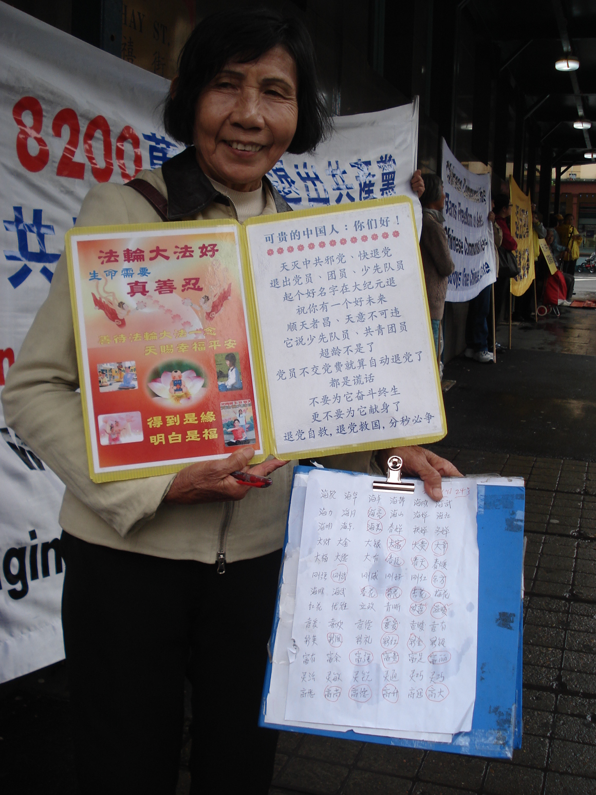 远远望去横幅林立,肃穆庄严,让许多中国人前来了解真相并“三:退.”(退!党!、退*团-、退*队-)。到下午一点钟,退!党!服务中心的朱阿姨已经帮助三十人办理了“三:退.”。退!党!活动持续到下午四点钟结束。