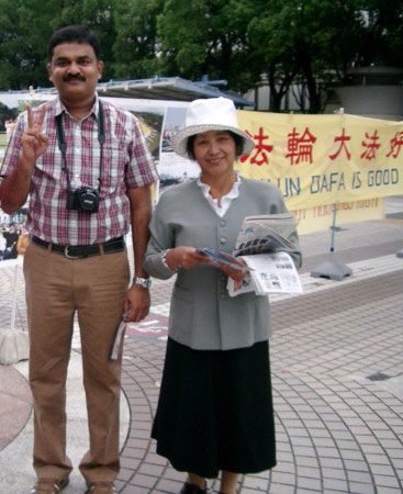 ![]() 这位印度人(左)表示:“我们也希望早日停止对法轮功的迫害!” |