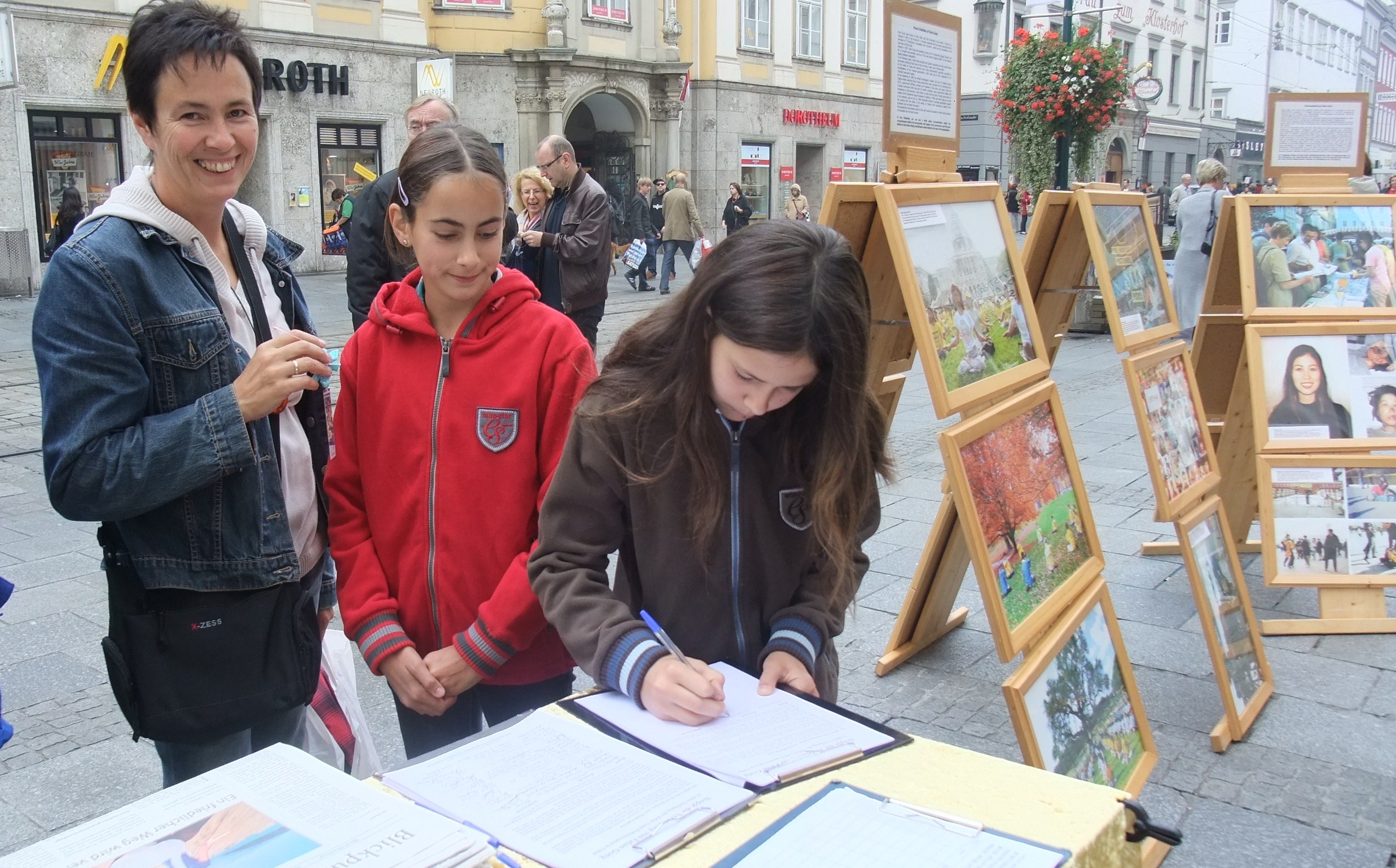 当天的活动吸引了非常多的路人驻足观看。听到法轮功学员们讲述中共的残酷迫害,很多人都在呼吁停止迫害的征签表上签名。信息桌前,经常是几个人排队等候签名反迫害。还有人在真相展板前仔细阅读。一位住在德国边界的游人在征签表上签完名后,说她在德国时,也看到过法轮功的信息日活动,所以对中共的暴行有所了解。