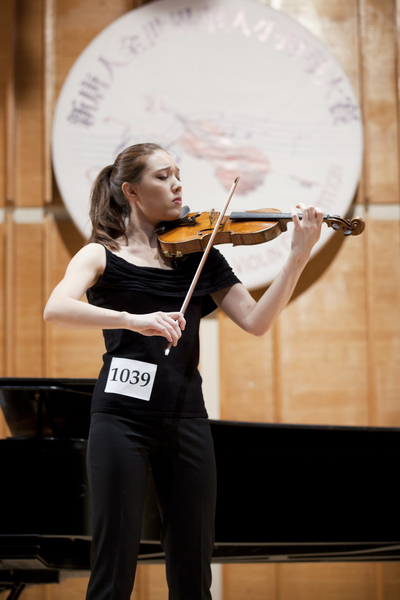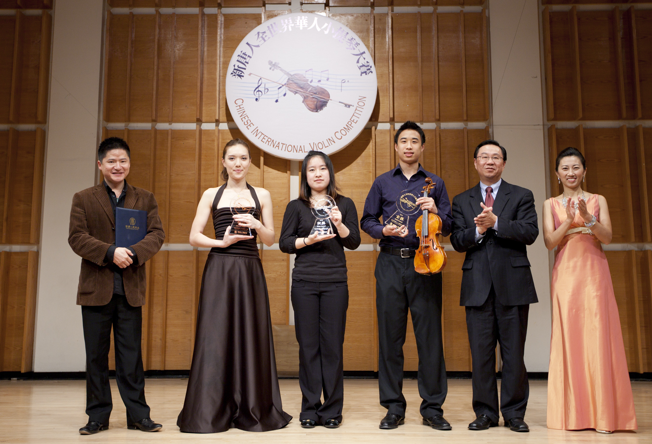![]() 第三届“全世界华人小提琴大赛”获奖选手在台上领奖。 |
