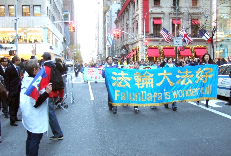 ![]() 法轮功学员参加纽约市第九十一届老兵节游行 |