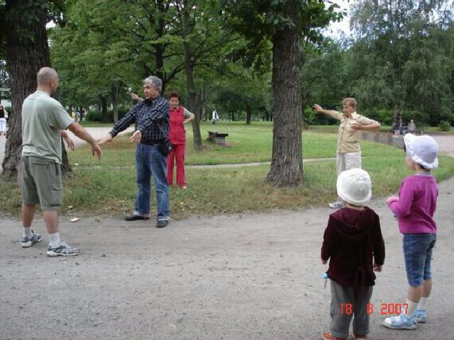 二零零七年八月十八日和二十五日,圣彼得堡法轮功学员分别在图哈切夫斯基元帅大街边的公园和“圣彼得堡三百年”公园里,举办了教功的活动。