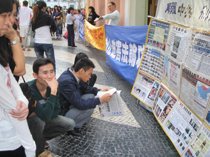 ![]() 法轮功学员在熙攘的澳门闹市向游客介绍法轮功真相 |