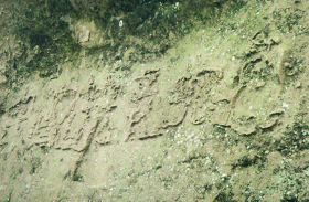 我来到那块闻名中外的藏字石前,只见六个苍劲有力的大字“中国共产党亡”立即映入眼帘,好清晰啊!我与亲戚看了好一会儿,就用相机将这六个大字拍了几张,亲戚还帮我拍了一张我与藏字石的合影照片。