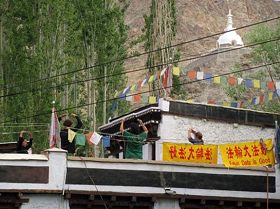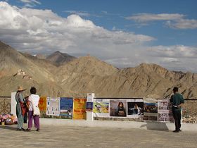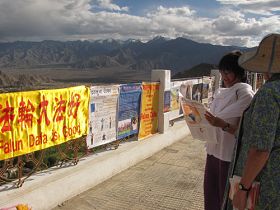 有一位学员在列城(Leh)陈列了很多海报、挂历和不干胶真相资料,简直到处都是。在二零零九年德里举办书展期间,一名年轻的印度女子来到法轮功的展位,她说,这是因为她在列城处处都看到法轮大法的资讯。