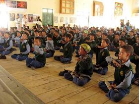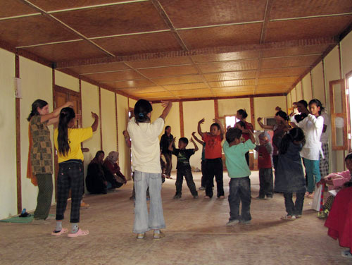 孩子们学功的兴致都很高,很多人都要求体育老师以后继续让他们学功。这所学校所有的教师都是西藏人,学生中也有很多是藏族学生,所以他们对中共践踏人权的情形非常了解。