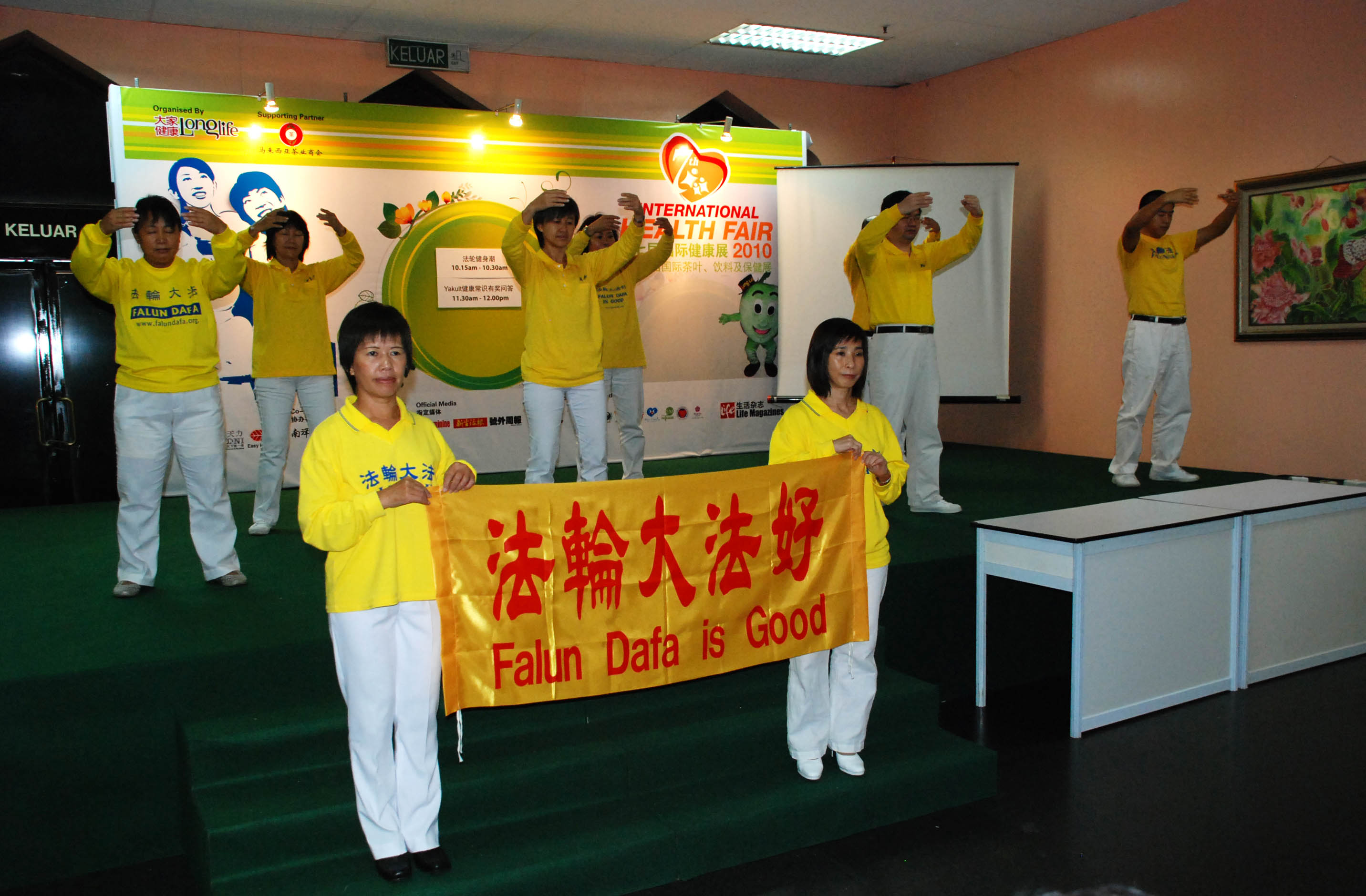 在本届健康展中,主办单位安排了很多精彩的节目,法轮功学员连续两天被安排到台上做功法示范。有很多民众向学员询问各地区的炼功点,他们表示有时间会去学炼法轮功。
