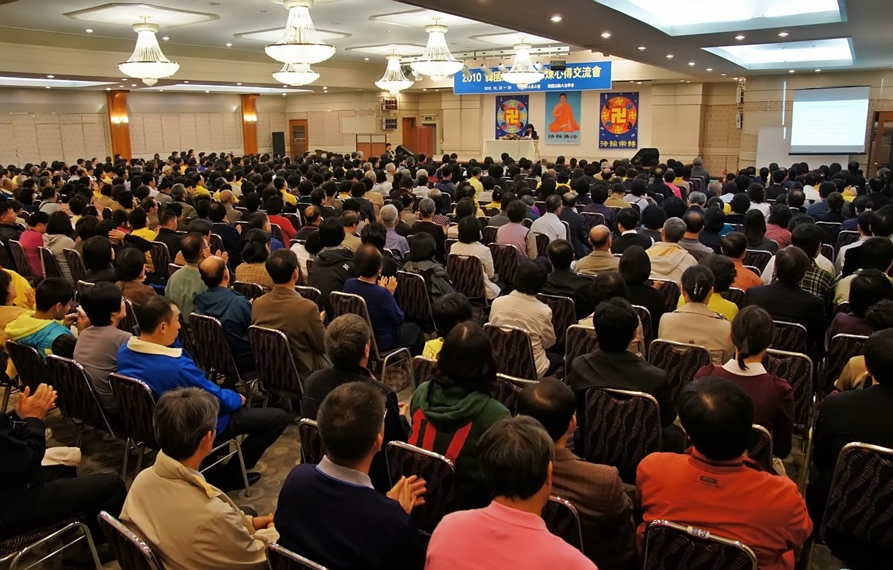 参加法会的全体学员自始至终倾听着发言,感受着会场中慈悲祥和的气氛。