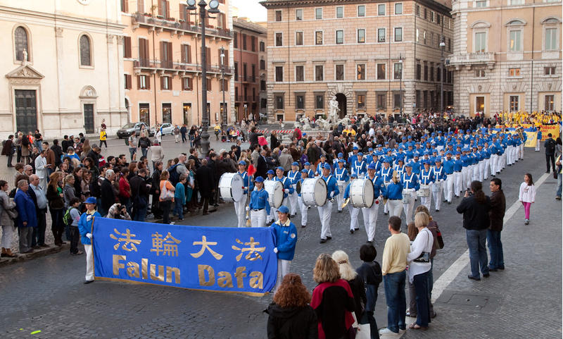二零一零年十一月十三日,来自英国、德国、法国、意大利、瑞典、荷兰、比利时等二十多个国家的法轮功学员齐聚意大利首府罗马,举行声势浩大的集会游行活动。多名欧盟和意大利官员致函或到场表示声援法轮功。其中,意大利青年部长乔治雅•美罗尼(Giorgia Meloni)致函表示:“对于法轮大法修炼者在中国所遭受的迫害,我感到非常愤慨。”“自由世界不能对上亿人失去思想、信仰、宗教和结社自由的事实视而不见。”