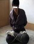 我被“绑腿”(双盘再用床单8字型捆绑、双手反绑在后,放在房中间,再殴打、灌辣椒不准睡觉、不准上厕所、在耳边高声攻击谩骂洗脑)十几小时,当时就站不起来走不了路。我目睹两名三十岁出头的学员被这样折磨成腿残废,她们是焦健和唐乙文。紧接着“十字站”(把手一字型铐在铁床上,拉到极限)殴打双腿,双腿立即又肿又瘀,不准上厕所,小便就撒在裤上。还铐住手强行把笔插入手中签字等折磨,手都戳出血来,这样连续三天。在神志不清状态下,我签了“三书”,做了法轮功学员决不应该做的。二零零三年一月二十三日释放。