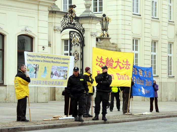 ![]() 部份法轮功学员在华沙总统府前抗议中共迫害 |