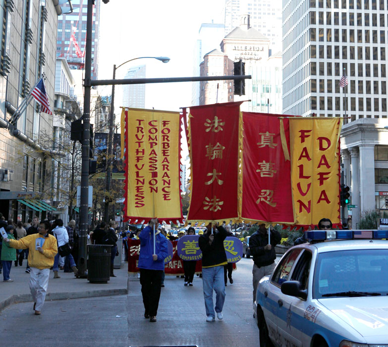 ![]() 法轮功学员在芝加哥市中心游行 |