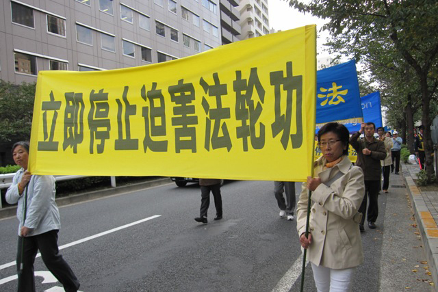 游行队伍经过东京市中心的繁华街道,街上的很多行人都驻足观看,接过揭露中共邪恶的真相资料并仔细阅读。人们对中共的独裁,居然对坚持信仰的法轮功进行那么残酷的迫害感到震惊。他们表示明白了为什么有那么多的人“三:退.”(退!党!、退*团-、退*队-)。有的人气愤表示,联合国为什么不对中共做出制裁。几位来自长春的中国留学生看到街头有这样的大型的游行感到惊奇,她们认真地听法轮功学员讲真相,表示会去了解更多有关法轮功和三:退.的情况。