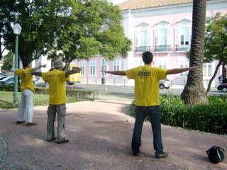 ![]() 法轮功学员在便利宫前炼功 |