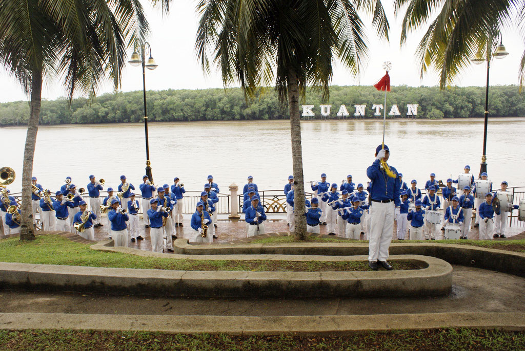 关丹(Kuantan)是马来西亚彭亨州的首府,也是西马东海岸最大的城市,天国乐团此行的第一站是Taman Gerola,此地为依海而建的一个大公园,环境优美,早上晨练的民众络绎不绝,《法轮大法好》、《法正乾坤》、《法鼓法号震十方》、《送宝》、《普世欢腾》、《佛恩圣乐》、《法轮圣王》,随着一首首优美的乐曲悠然响起,此地的民众也被那悦耳的乐曲所吸引纷纷驻足聆听,并索取资料了解法轮功。