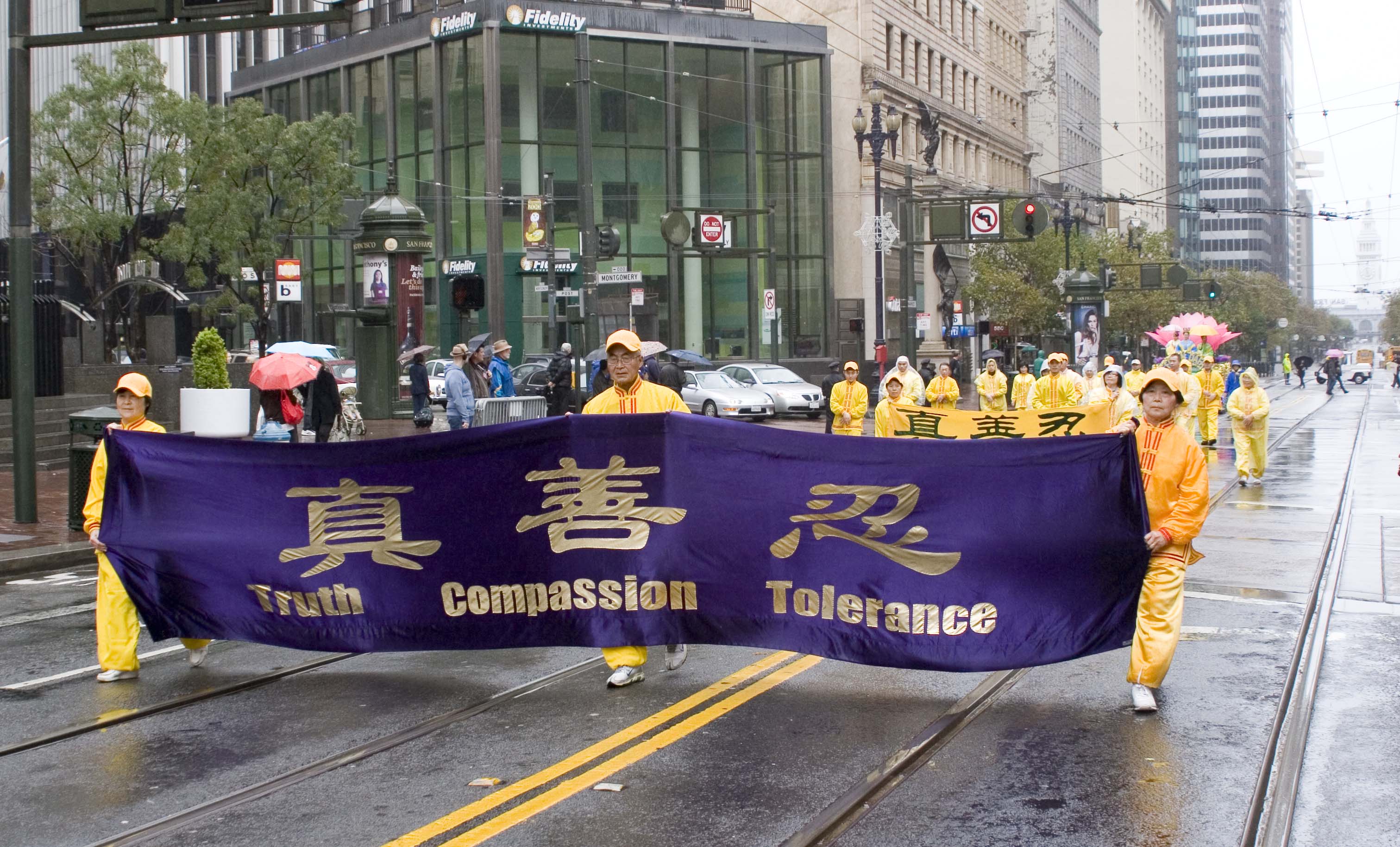 旧金山市民芭芭拉和她的丈夫看到法轮功学员的炼功队和花车,两个人高兴地使劲鼓掌。芭芭拉说:“我们绝对喜欢花车上写的真、善、忍三个字。”当他们听到法轮功是修炼,真、善、忍是法轮功的原则时,他们再次鼓起掌来,并跟着用中文发音:法轮大法,太美了。他们了解到中国发生的迫害后,脸色变得沉重起来。他们说,希望那里的情况发生变化。