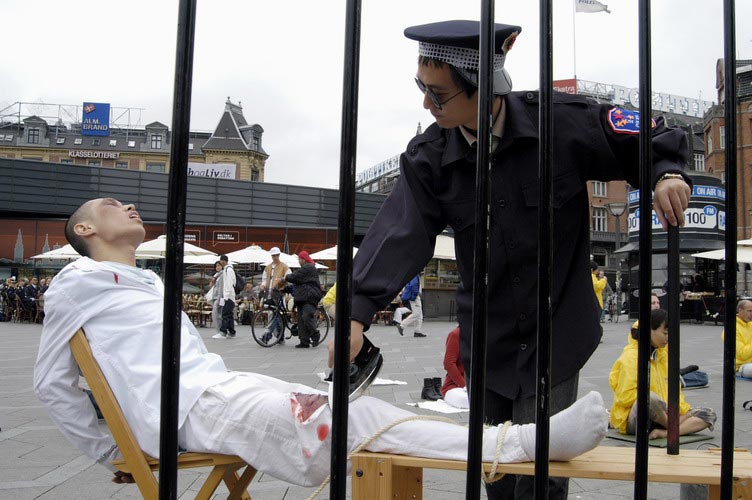 二零零四年六月二十六日是“世界反酷刑日”,丹麦与瑞典的部份法轮功学员在哥本哈根市中心的市政厅广场举办了北欧的第一次“反酷刑展”,把法轮功学员在中国受到的残酷迫害,活生生的展示在世人面前,震惊了过往民众。