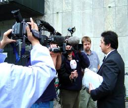 ![]() 学员递交诉讼状,丹麦国家电视台DR频道对起诉案进行了报导。 |