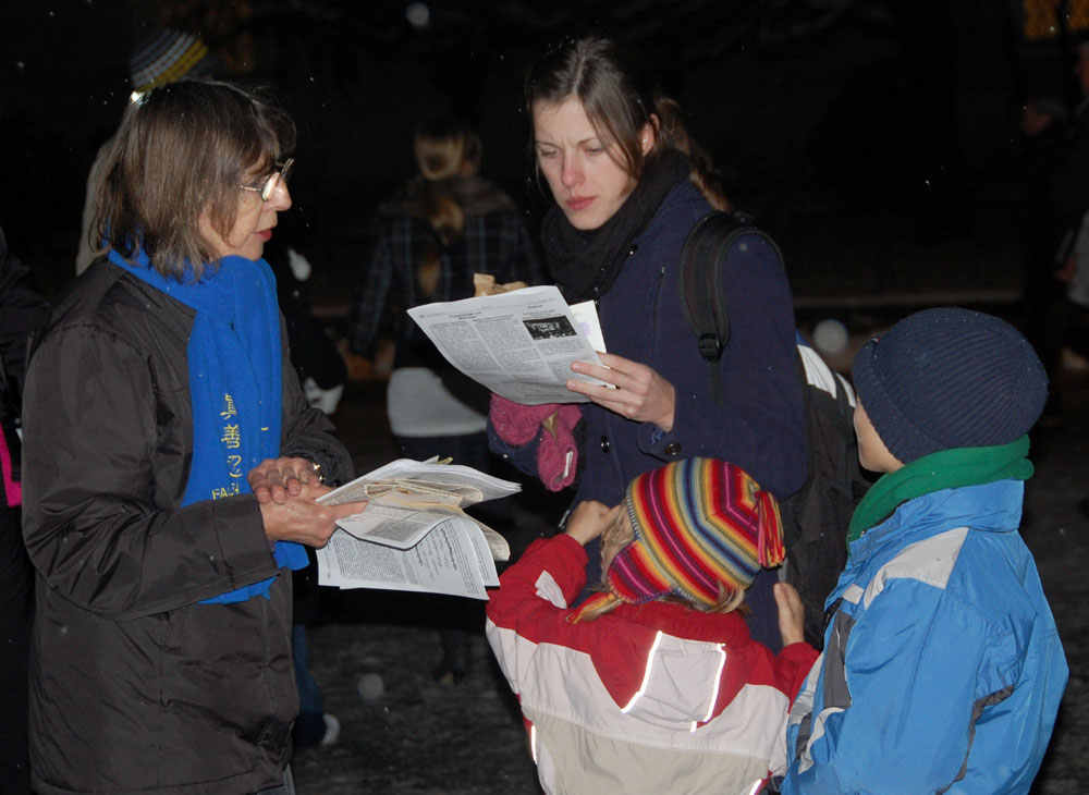一位女士在知道了真相后,对学员说:“你们这种反对迫害的活动太有意义了!我相信,人死去,他的灵魂还是存在的 !”