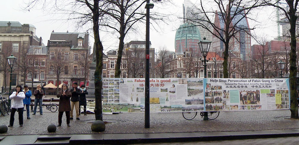![]() 图:在海牙第二议院门前呼吁关注中共迫害法轮功 |