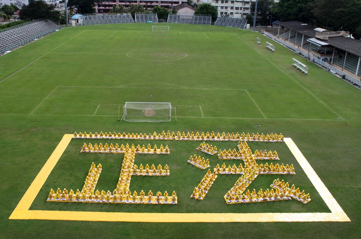 当天有三百多名法轮功学员参与了排字活动。天公作美,在晴朗的天空下,大家齐心将“正法”两字整齐地排出来,并在操场上静坐一个多小时,体现了法轮大法修炼者“真、善、忍”的精神面貌,气氛祥和。