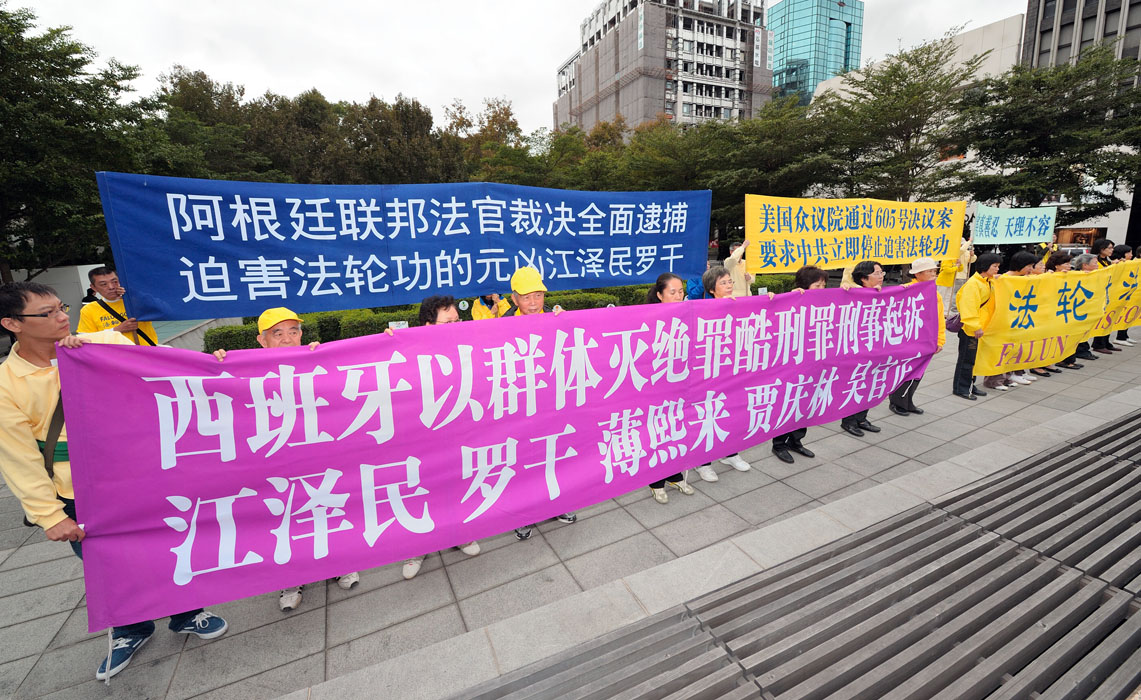 ![]() 台中福华饭店外,“迫害法轮功,吉林你被刑事控告了!” |