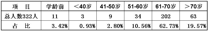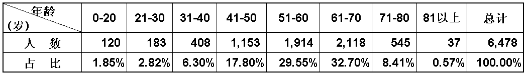 2.1 表1,可见6478人年龄分布在各个年龄组,以51—70岁两组中最集中,共4032人,占被调查人数62.1%。