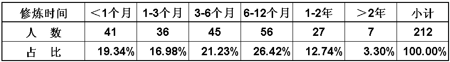 资料收集于98年2月期间,被调查人数6478人,男性1501人,女性4977人,其中文盲者322人,平均年龄55.4岁,平均修炼时间1.8年,平均每天炼功2.0小时。调查面涉及市区234个炼功点。调查方式以团体普查、随机抽样、重复抽样等几种方式进行,设计统一表格,由被调查者自评式填写自身情况,专人收集整理,统计学处理。
